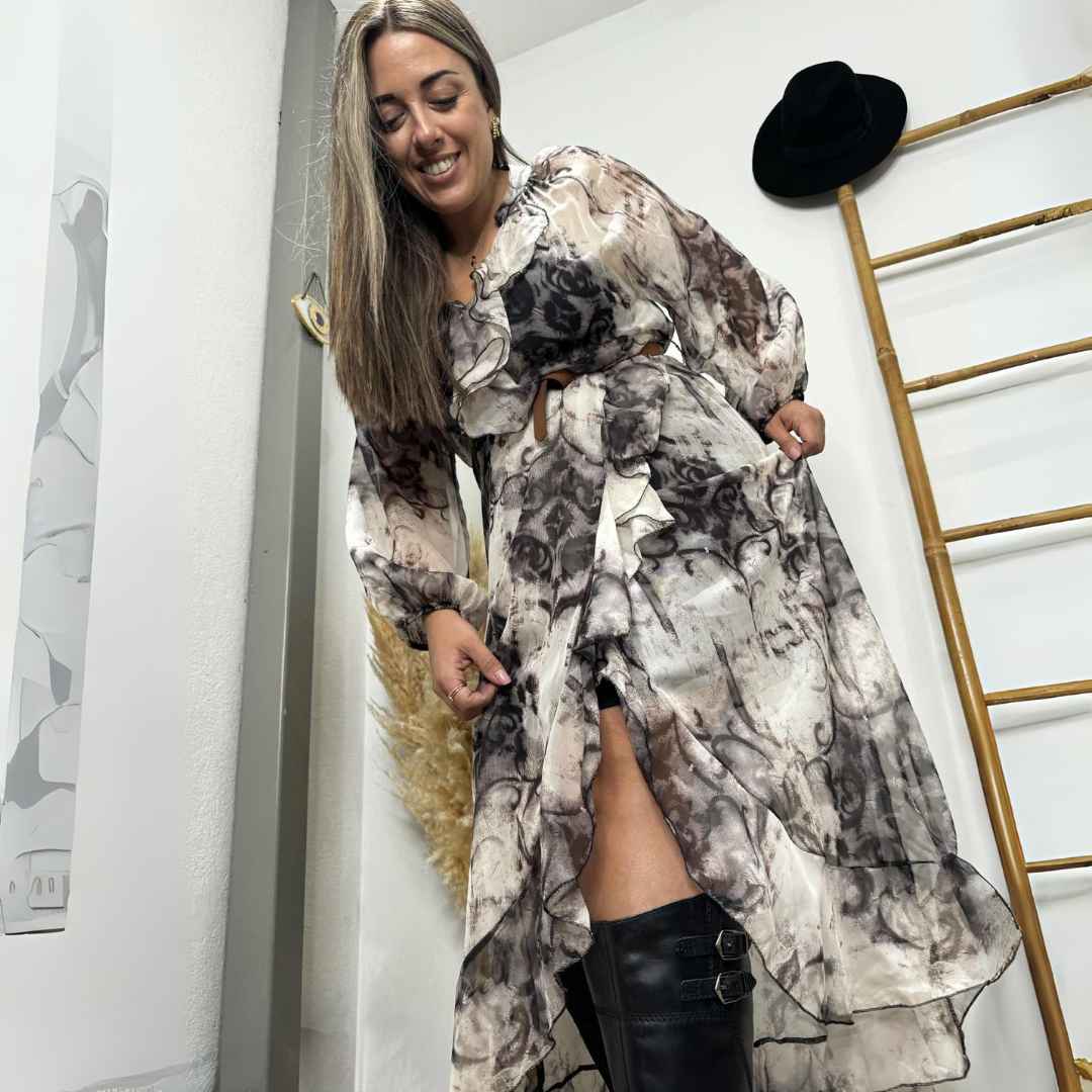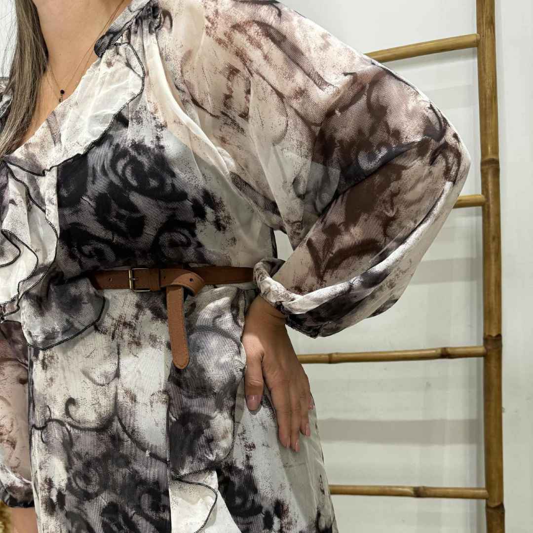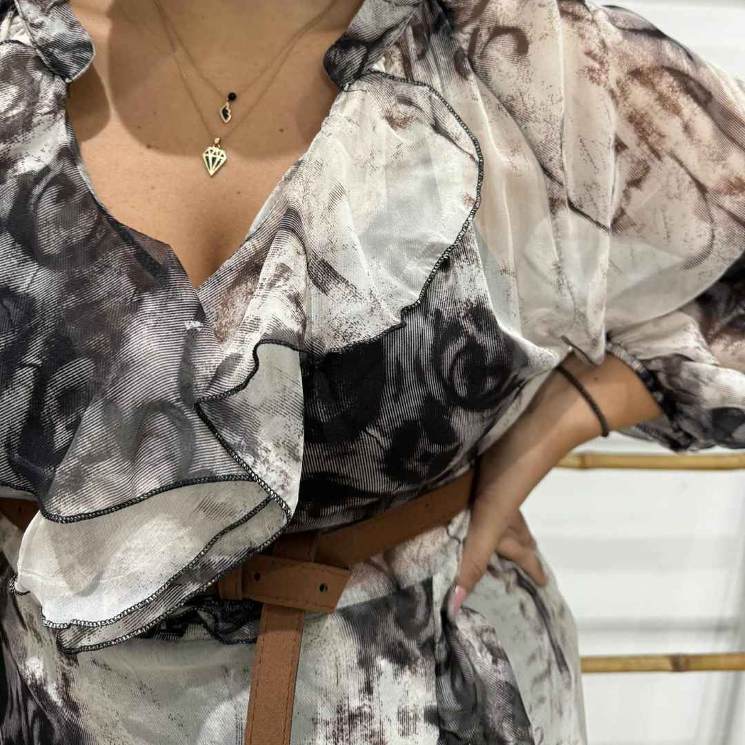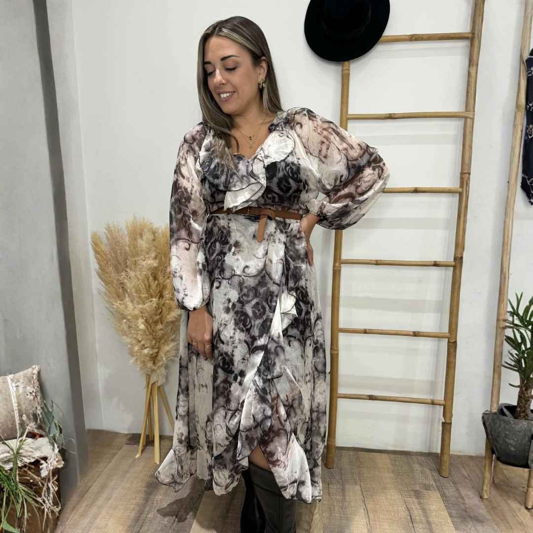Η ζώνη suede σε ταμπά χρώμα περιλαμβάνεται και αναδεικνύει τη μέση, ολοκληρώνοντας το look με boho-chic χαρακτήρα. Ιδανικό για καθημερινές εμφανίσεις, βόλτες ή πιο ιδιαίτερες περιστάσεις — ένα φόρεμα που προσαρμόζεται εύκολα από πρωί σε βράδυ.
